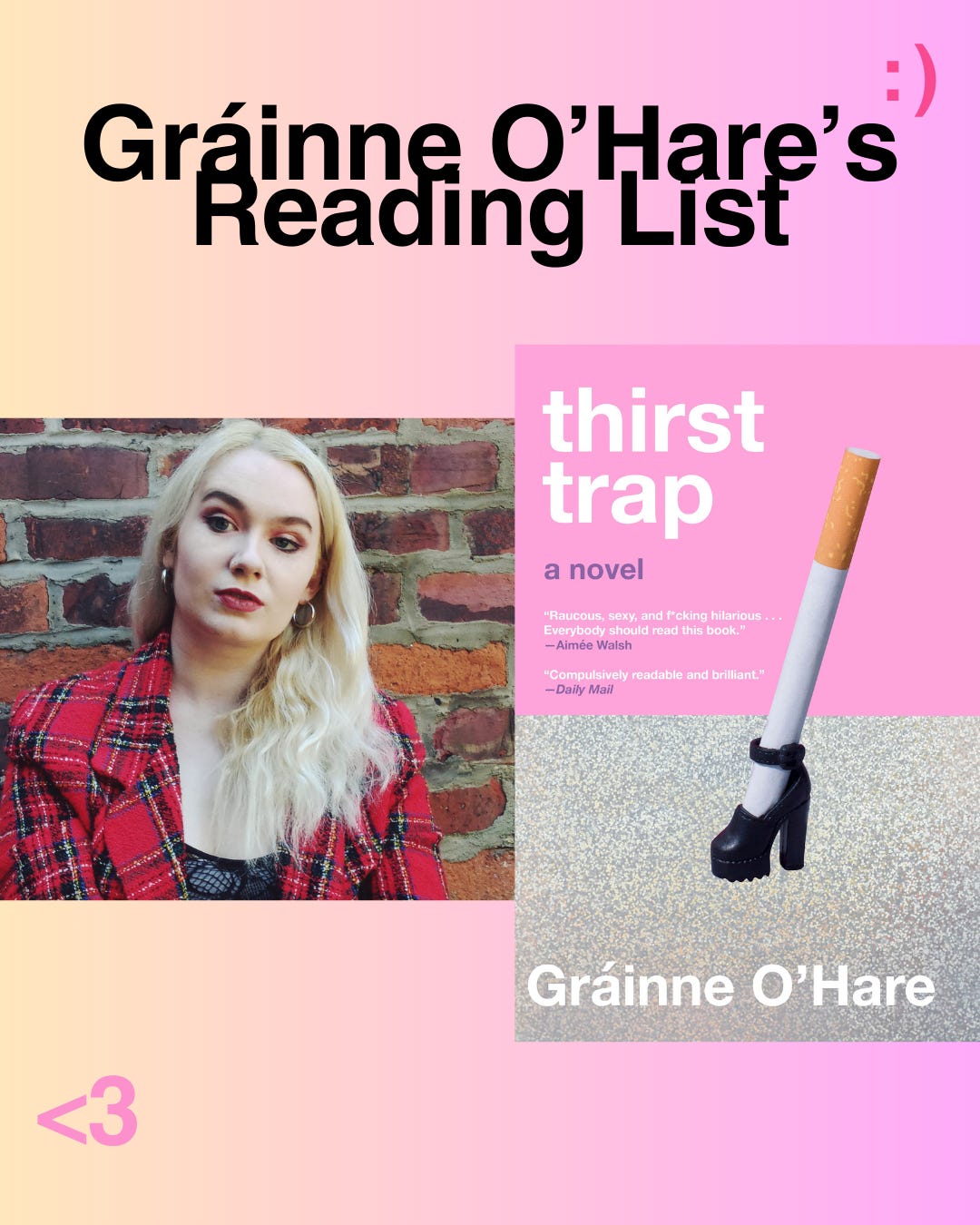 Hi :) Today we have an excellent books list from the Irish writer Gráinne O’Hare. In 2023, we tried to pitch a story to Nylon about Irish authors who weren’t Sally Rooney. They said no, to which we say: This is the beauty of Substack!